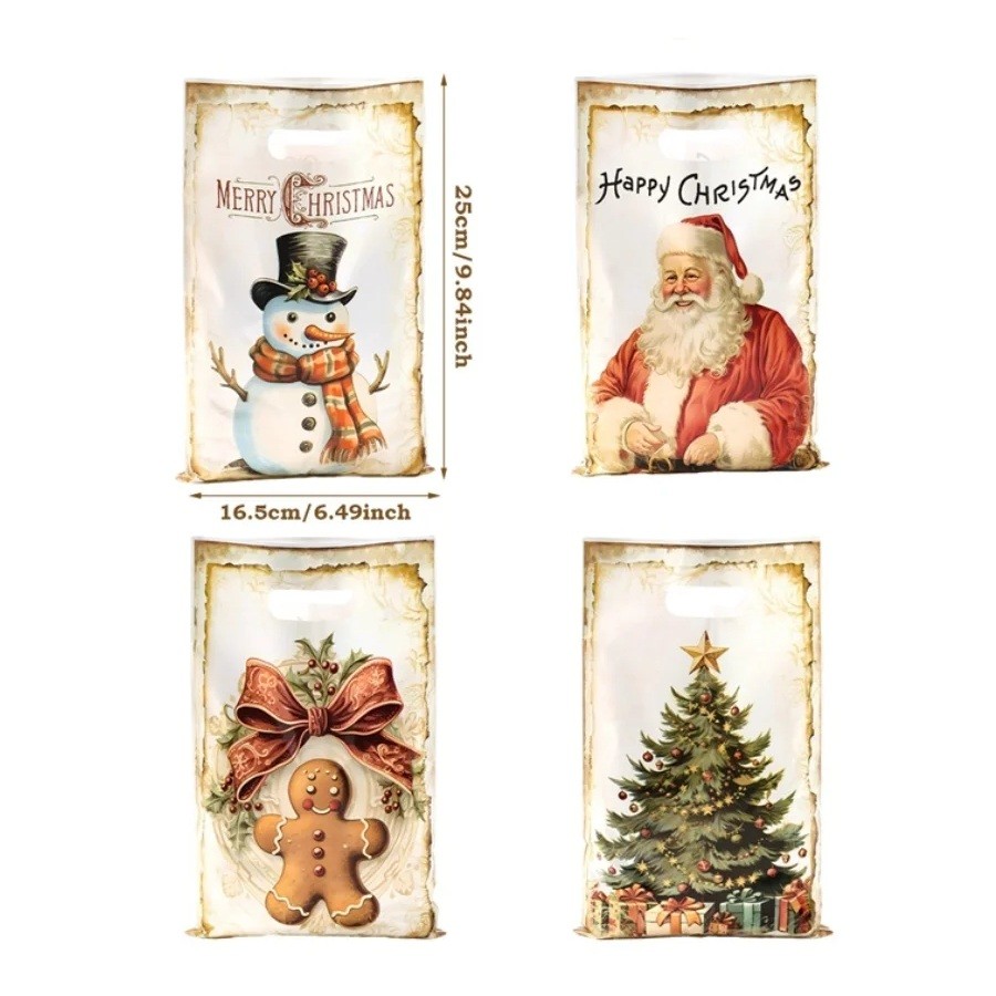 10 kpl Jouluteemalla varustettuja lahjakasseja 25 x 16,5 cm Muoviset kassit pienille lahjoille ja makeisille Kestävä kevyt joulupakkaus