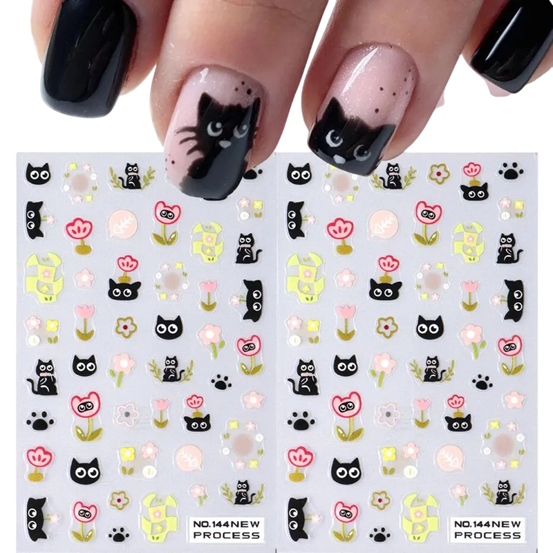 2 kpl kynsitarroja musta kissa 3D söpö eläin itseliimautuvat tarrat kukkakuviot koristelu manikyyri kynsitaide tarvikkeet