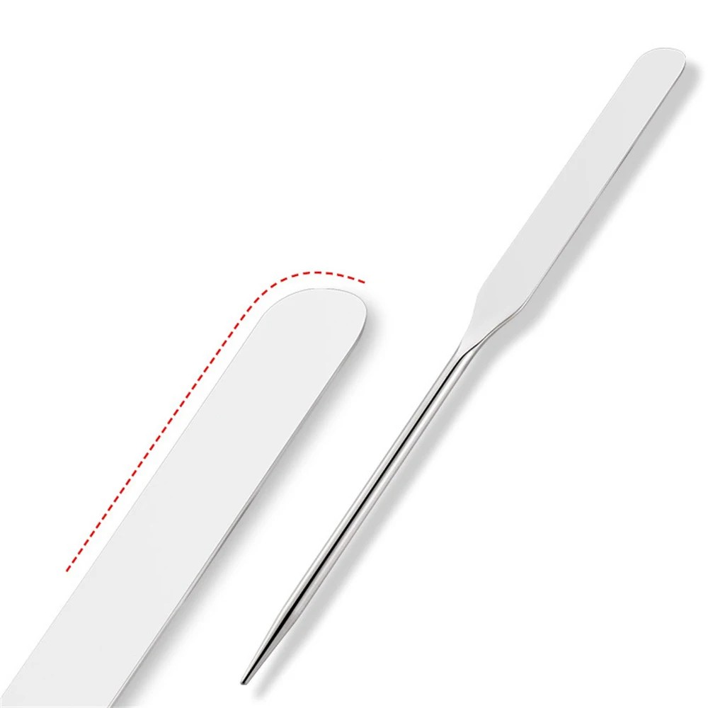 Tämä käytännöllinen kahden ruostumattoman työkalun setti on ihanteellinen valinta kaikille, jotka haluavat meikata mahdollisimman hygienisesti, tarkasti ja mukavasti. Lastoilla voit helposti ottaa tarvittavan määrän meikkivoidetta, voidetta tai sävyttäjää ilman turhaa kosketusta sormien kanssa ja ilman riskiä tuotteen kontaminoitumisesta. Sekoitustikku mahdollistaa eri sävyjen tai tekstuurien yhdistämisen suoraan paletilla, jolloin voit luoda täydellisen sävyn tarpeidesi mukaan.