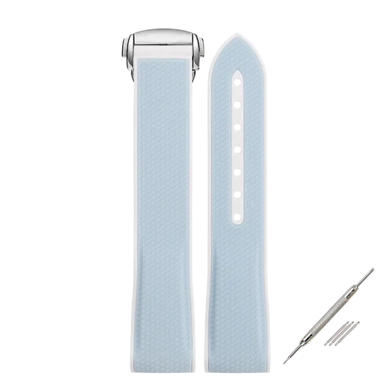Tämä 20 mm leveä silikoni kumihihna on ihanteellinen valinta käyttäjille, jotka etsivät yhdistelmää kestävyydestä, tyylikkäästä urheilullisesta ilmeestä ja mukavasta käytöstä. Pehmeän, joustavan materiaalin ansiosta se mukautuu täydellisesti ranteeseen ja tarjoaa mukavuutta jopa pitkään käyttöön. Se on yhteensopiva Omega X Swatch MoonSwatchin ja myös Seamaster 300:n kanssa, mikä tekee siitä sopivan laajalle valikoimalle premium-malleja. Kokoontaitettava rakenne takaa tukevan kiinnityksen ja turvallisen sulkemisen päivittäisissä aktiviteeteissa. Pakkaus sisältää myös korjaustarvikkeet hihnan korjaamiseen, jotka mahdollistavat helpon osien vaihdon tai täydentämisen.