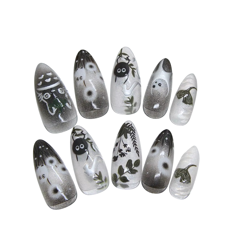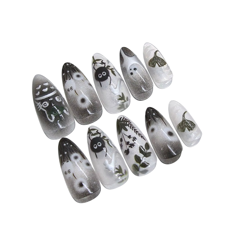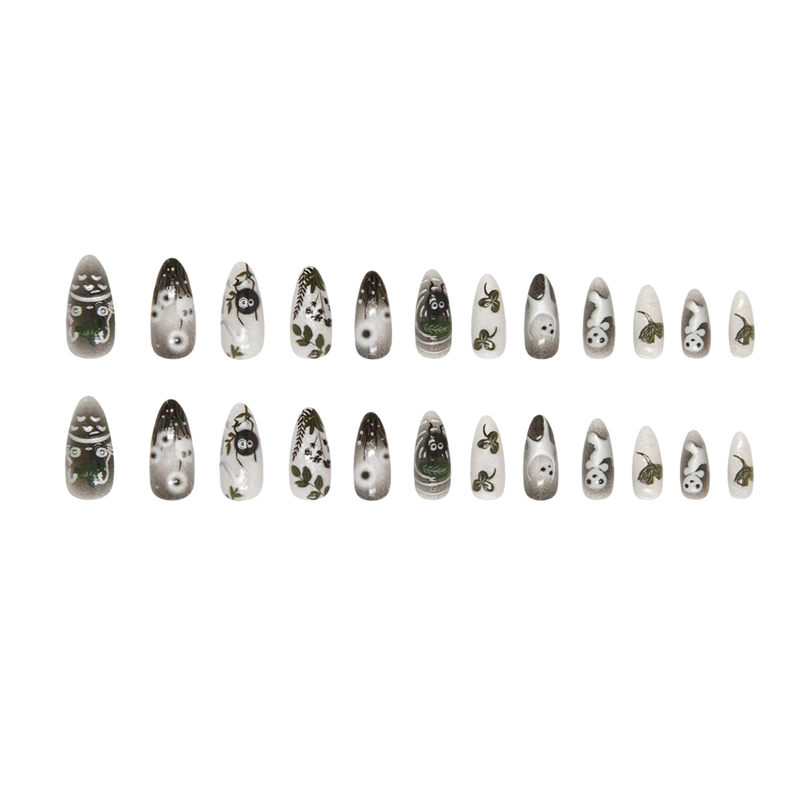 Tämä keinokynsisarja on ihanteellinen ratkaisu kaikille, jotka haluavat kauniit ja tyylikkäät kynnet ilman salonkiin menemistä. Sarja sisältää 24 kappaletta keinokynsiä leikkisillä piirretyillä kuvioilla, jotka vievät huomion heti ensisilmäyksellä. 12 eri kokoa helpottaa täydellisen koon valitsemista jokaiselle sormelle. Tyylikäs mantelin muoto näyttää luonnolliselta ja sopii niin päivittäiseen käyttöön kuin juhlatilaisuuksiinkin. Kynsiä voidaan helposti leikata ja viilata haluttuun pituuteen ja muotoon.