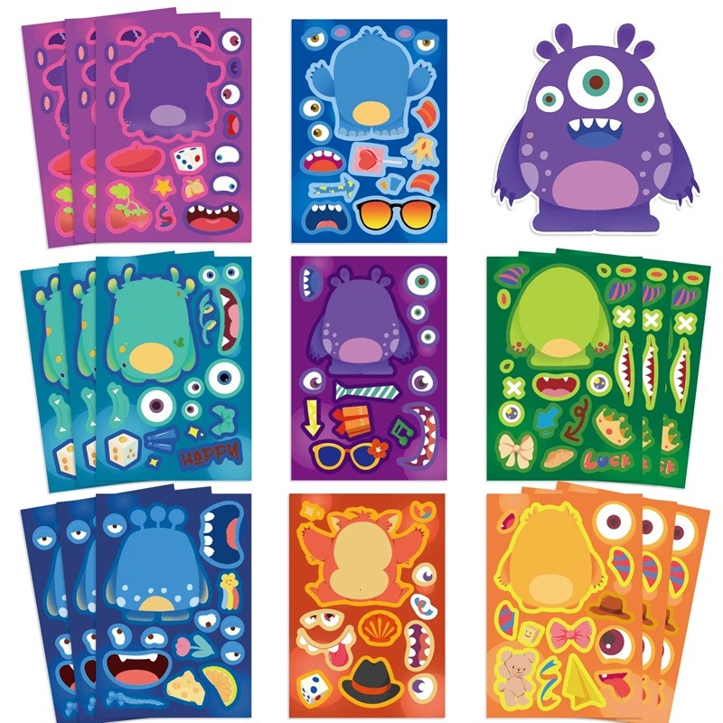 24 tarra-arkkia Pienet hirviöt 11 × 16 cm PVC vedenkestäviä tarroja Tee itse Luo kasvoja Hauskoja tarroja lapsille