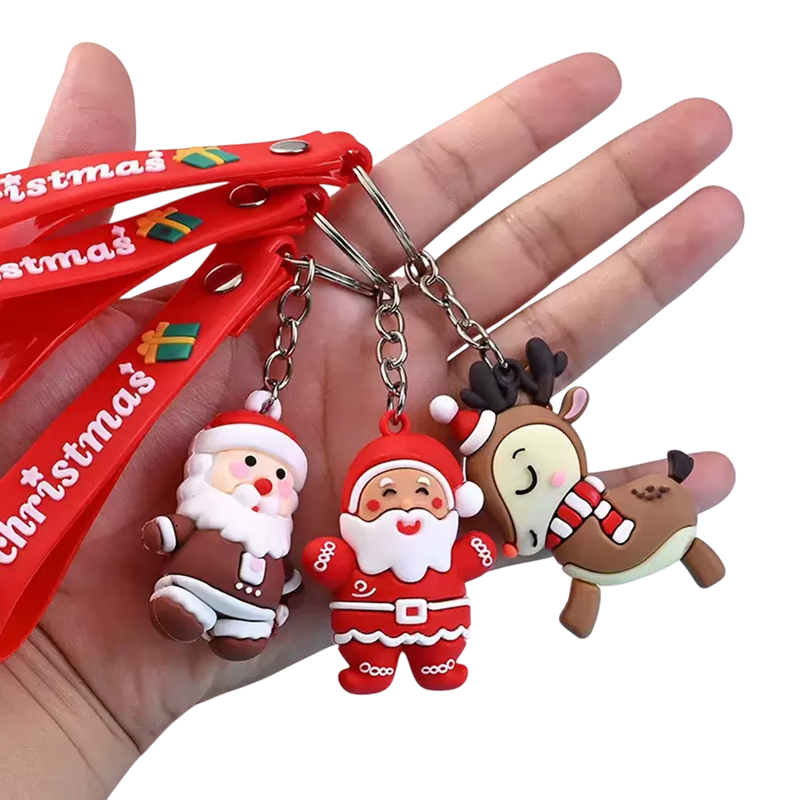 Hauskat jouluiset avaimenperät satunnaisilla motiveilla ilahduttavat lapsia ja aikuisia, ja ne sopivat pienenä lahjana, huomiona tai koristeena. Täydellinen kuvaus