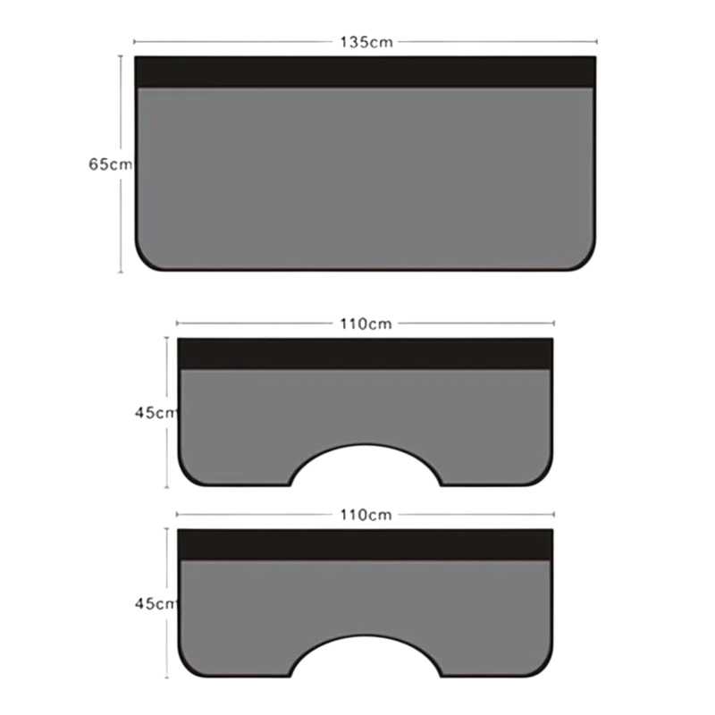 • Mittoja: 1× 135 x 65 cm, 2× 110 x 45 cm