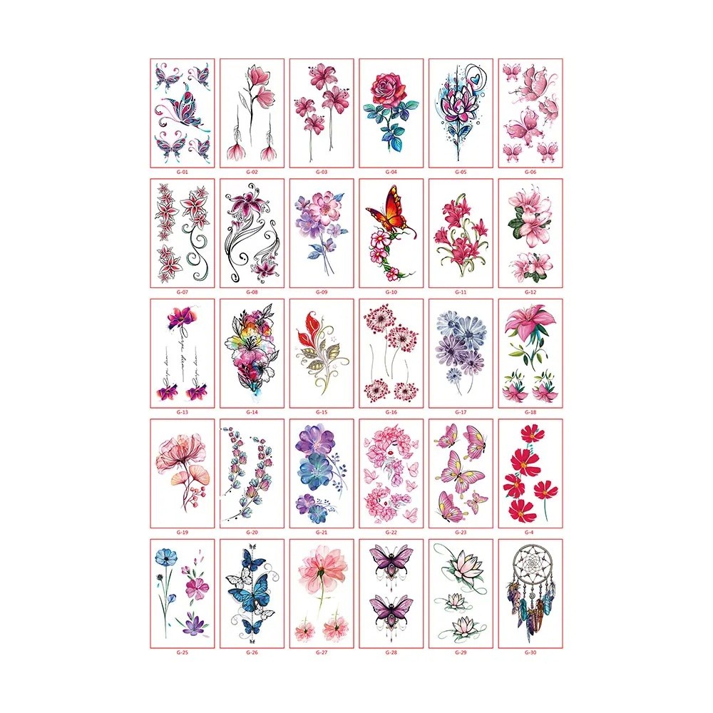 30 kappaleen setti väliaikaisia tatuointeja 5,7 x 9,7 cm kukka-aiheilla perhosia höyheniä ruusuja lootuksia liljoja ja värikkäitä kukkia
