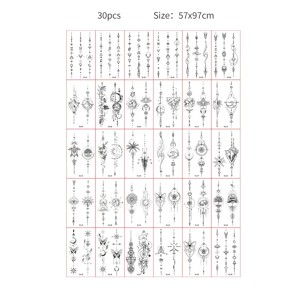 Tämä setti sisältää 30 arkkia väliaikaisia tatuointeja, joiden koko on 5,7 x 9,7 cm, tyylikkäillä geometrisilla ja ornamentaalisilla kuvioilla mustavalkoisessa toteutuksessa. Minimalistinen, mutta silti omaperäinen muotoilu on täydellinen festivaaleille, valokuvauksiin, juhliin ja päivittäiseen koristeluun.