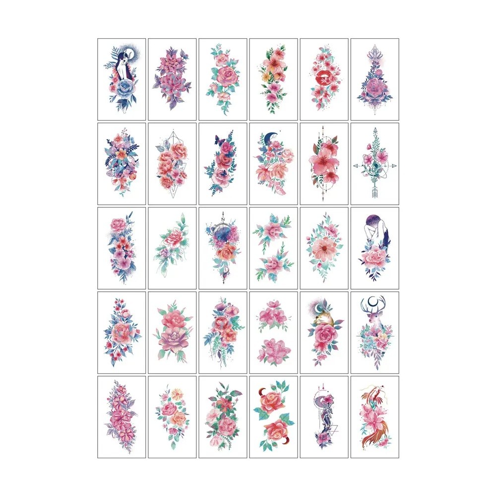 Etusivu Etusivu Terveys ja kauneus Tatuoinnit 30 kappaleen väliaikainen tatuointisetti 5,7 x 9,7 cm Kukka-aiheita Mustavalkoisia ja värillisiä Vedenkestäviä ihotatuointeja
