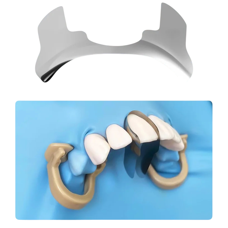 30 kpl muotoiltuja metallisia matriisipantoja etuhampaille. Ruostumaton teräs tehokkaaseen karieskorjaukseen luokissa III ja IV, helppo sijoittaa ja täydellinen kiinnitys. Täydellinen kuvaus