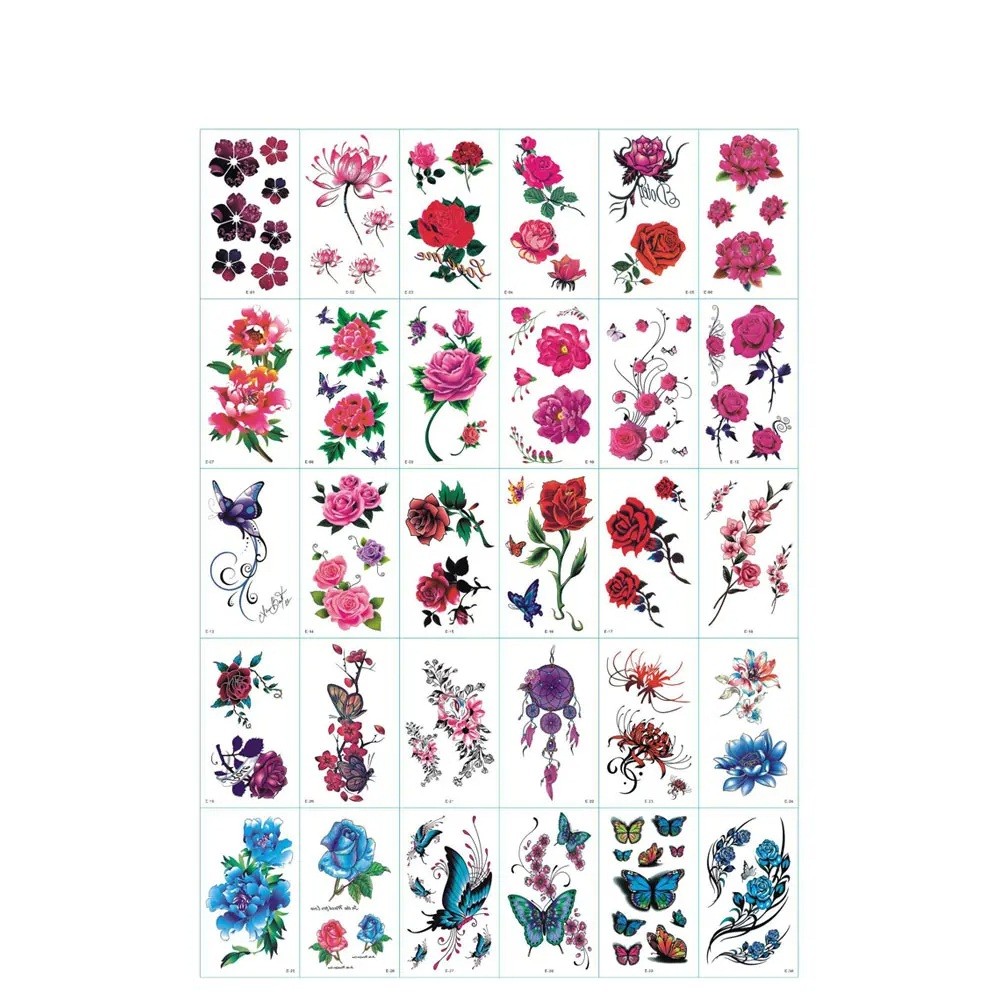 - Pakkauksen sisältö: 30 kpl värikkäitä tatuointeja kukkakuviolla ja perhosilla.