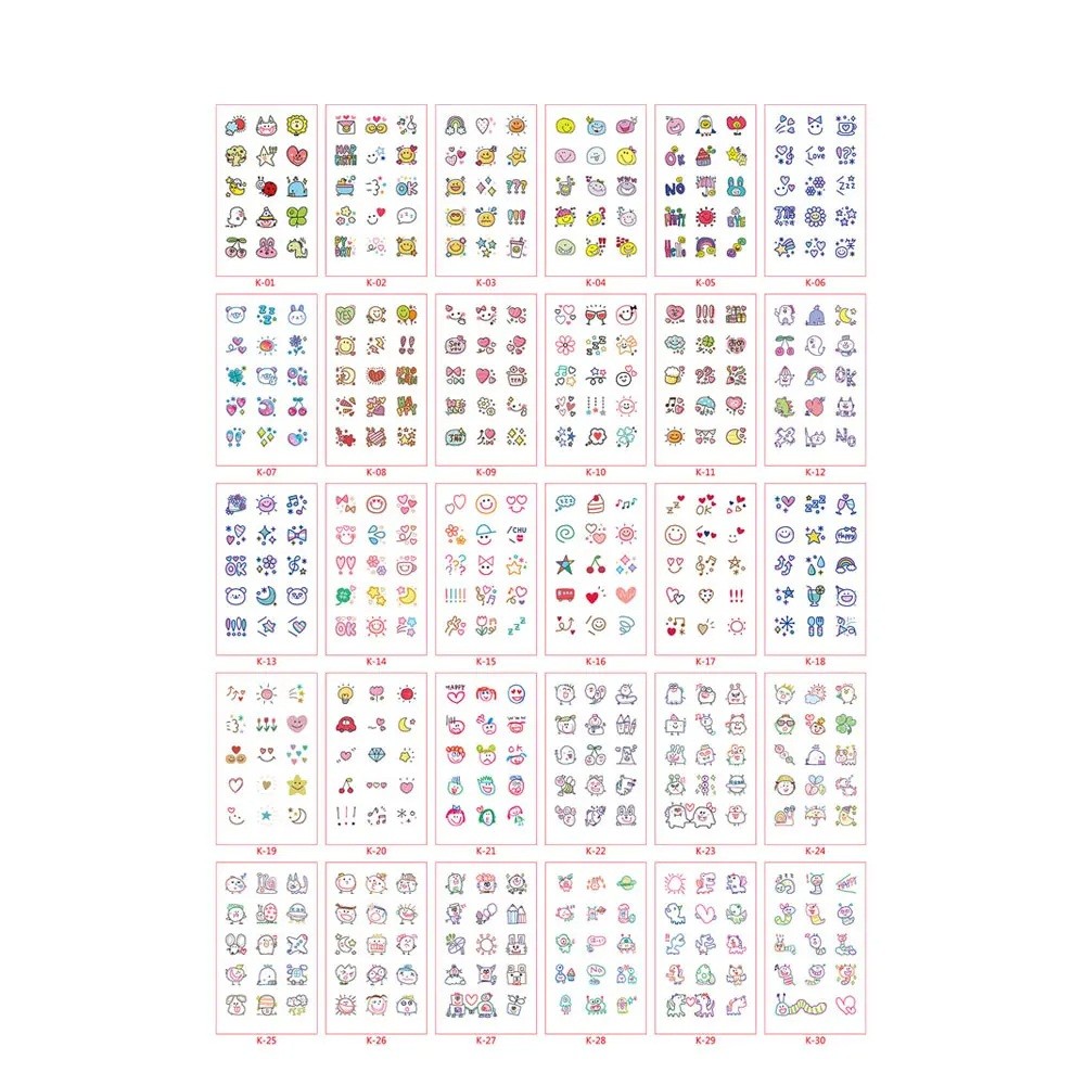 Tämä setti tarjoaa 30 arkkia väliaikaisia tatuointeja, joiden koko on 5,7 x 9,7 cm, täynnä iloisia ja värikkäitä mini-motiiveja. Täältä löydät hymyileviä kasvoja, söpöjä eläimiä, sydämiä, kukkia, hedelmiä ja muita leikkisiä symboleita. Ihanteellinen lapsille juhliin, koulutapahtumiin ja hauskanpitoon kotona.