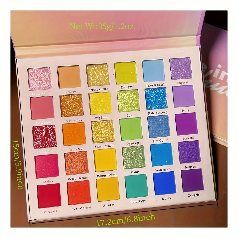 30 värin silmämeikkipaletti Sateenkaari korallinsävyjä Matta helmiäishohtoinen kimalteleva korkea pigmentaatio Juhla- ja tanssimeikki Silmämeikkipaletti, jossa on 30 intensiivistä sävyä, tarjoaa monipuolisen värivalikoiman, joka on inspiroitunut sateenkaaresta, korallinsävyistä sekä voimakkaista kesäisistä väreistä. Matta-, helmiäishohtoiset ja kimaltelevat tekstuurit mahdollistavat luovien, leikkisien ja dramaattisten meikkityylien luomisen. Korkean pigmentaation ansiosta saat voimakkaita värejä jo ensimmäisellä kerroksella. Paletti on ihanteellinen juhliin, festivaaleille, tanssiesityksiin sekä omaperäiseen päivittäiseen meikkiin. Värivalikoima sisältää vaaleanpunaisia, keltaisia, sinisiä, vihreitä ja violetteja sävyjä, joita on helppo yhdistää ja kerrostaa. Mattasävyt sopivat pohjaksi ja varjostamiseen, kun taas kimaltelevat ja helmiäishohtoiset sävyt antavat meikkiin voimakasta kiiltoa. Laajan värivalikoiman ansiosta voit luoda sekä hienovaraisia pastellimeikkejä että voimakkaita, näyttäviä ilmeitä. Kun käytät pohjustustuotetta, meikki pysyy intensiivisenä ja raikkaana pitkään.
