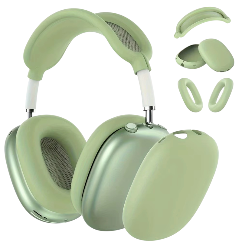 Silikoninen 3v1 suoja AirPods Max:lle, mukaan lukien pääsangan suojus, ulkoiset suojat ja suojakuoret korvapehmusteille naarmuuntumisen ja iskujen estämiseksi. Täydellinen kuvaus