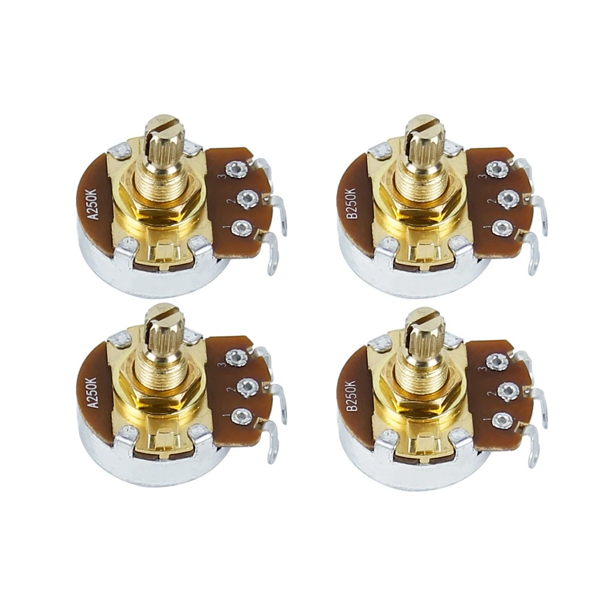 4 kpl A250K ja B250K potentiometrejä lyhyellä akselilla sähkökitaraa varten Säätönuppisarja äänen ja äänenvoimakkuuden säätämiseen Tarkka äänen viritys