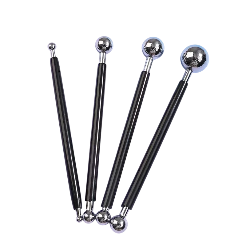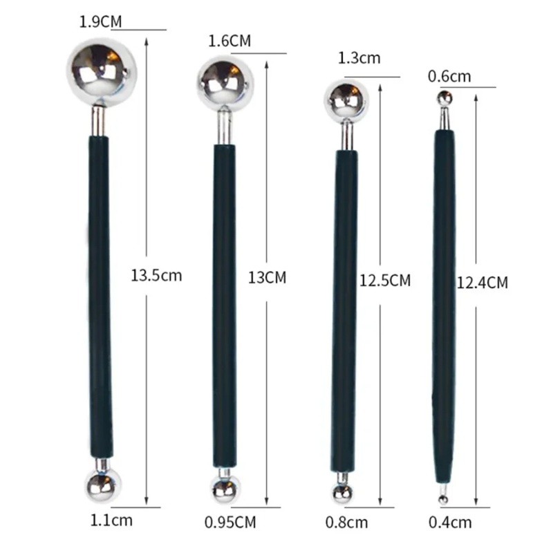 • Pakkauksen sisältö: 4 kpl kaksipuolisia ruostumattomasta teräksestä valmistettuja muotoilutyökaluja palloilla.