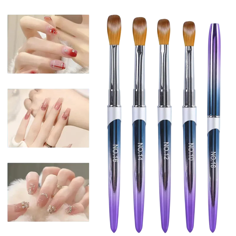 Siveltimet on valmistettu laadukkaista materiaaleista, jotka takaavat luotettavan suorituskyvyn ja pitkäaikaisen käytön. Suojakorkkien ansiosta harjakuituja suojataan muodon vääristymiltä, mikä auttaa säilyttämään niiden muodon ja toimivuuden. Kokoelma on kevyt, kompakti ja ihanteellinen myös matkustamiseen tai liikkuviin palveluihin. Ammattimainen viimeistely mahdollistaa tarkan ja tasaisen materiaalin levittämisen ilman turhia tuotehukkoja. Jos etsit käytännöllisiä ja luotettavia työkaluja kynsien hoitoon, tämä sivellinkokoelma on loistava valinta.
