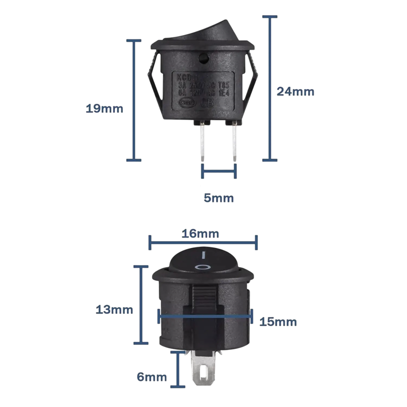Tämä sarja sisältää 5 korkealaatuista mustaa kytkintä, jotka on suunniteltu erilaisiin sähköasennuskäyttöihin. Jokaisella kytkimellä on kapasiteetti 3A 250V AC tai 6A 125V, mikä takaa riittävän luotettavuuden ja turvallisuuden tavallisissa sovelluksissa. Asennus on erittäin yksinkertaista, kytkimissä on asennusaukko, joka on noin 15 mm, mikä mahdollistaa niiden helpon integroinnin useimpiin laitteisiin. Nämä kytkimet sopivat erinomaisesti kodin elektroniikkaan, valaistukseen ja muihin sähkölaitteisiin, joissa tarvitaan helppoa kytkemistä ja sammuttamista.