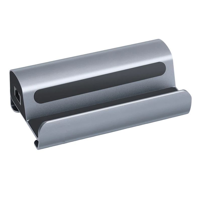 Kompakti 6-in-1-telakointiasema jalustalla Steam Deckille tarjoaa HDMI 4K:n, USB 3.0:n, gigabitin Ethernetin, PD-virransyötön ja liukumattoman pohjan. Täydellinen kuvaus