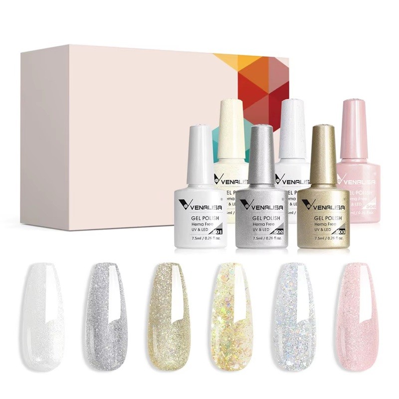 6 kpl UV LED geeliäkkäriä 7,5 ml Kotimanikyyri Sarja Kimaltava vaikutus Ilman HEMAa ja TPO:ta Ekologisesti ystävälliset puolipysyvät lakat