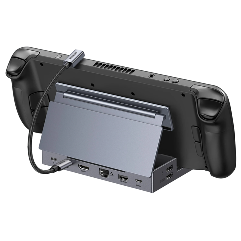 Tämä tehokas 9-in-1-telakointiasema on suunniteltu erityisesti Steam Deckin käyttäjille, jotka haluavat hyödyntää laitettaan parhaalla mahdollisella tavalla kotona ja liikkeellä ollessaan. Se tarjoaa kompaktit 14 x 8 x 2,5 cm mitat ja samalla laajat liitäntävaihtoehdot. Korkealaatuinen HDMI-lähtö, joka tukee 4K:ta 60 Hz:n taajuudella, varmistaa terävän kuvan ulkoisilla näytöillä. USB 3.2- ja USB-C 10 Gbps -porttien , 100 W:n PD-virtalähteen , gigabitin Ethernetin ja SD/TF-kortinlukijoiden (104 MB/s) ansiosta voit luottaa korkeaan suorituskykyyn ja siirtonopeuteen. Lisäksi vakaa ja liukumaton jalusta varmistaa konsolin turvallisen istuvuuden ja mukavan kulman pelaamiseen.