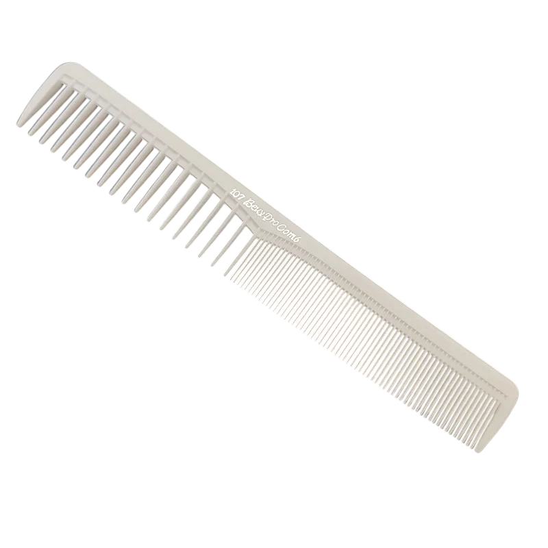 Ammattimainen kampa on ihanteellinen apuväline päivittäiseen muotoiluun ja tarkkaan hiusten leikkaamiseen kotona ja salonissa. Litteän muodon ja leveiden välihammasratkaisujen ansiosta se mahdollistaa hiusten erottamisen ja hallinnan lopputuloksessa. Kevyt rakenne laadukkaasta muovista takaa mukavan käsittelyn ilman käden väsymistä. Kampa sopii sekä lyhyille että pitkille hiuksille, ja sekä aloittelijat että ammattilaiskampaajat arvostavat sitä.