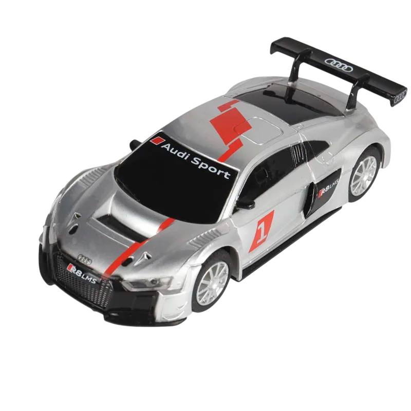 Audi R8 LMS -auton malli 1:43 Muovi Hopeinen kilpa-auto Yksityiskohtainen urheiluauton pienoismalli Keräilymalli lelu lapsille lahjaksi