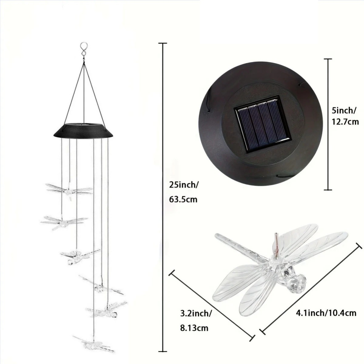Aurinkoenergia LED-valohelikopteri Sudenkorento 63,5 cm IP65 Riippuva puutarhakoriste värimuutoksella Aurinkoenergia valaistus Aurinkoenergia LED-valohelikopteri sudenkorentomotivi on tyylikäs ja ainutlaatuinen koriste, joka sopii puutarhaan, terassille, parvekkeelle tai pergolalle. Päivällä se latautuu automaattisesti aurinkopaneelin avulla ja hämärässä se syttyy itsestään pehmeillä värisävyillä. Läpinäkyvät sudenkorennot luovat vaikuttavan valotehosteen, joka korostuu erityisesti iltaisin. Riippuvan rakenteen ansiosta koristeen voi helposti kiinnittää koukkuun, oksaan tai pergolan rakenteeseen. Tuulen liike antaa helikopterille elävän ja luonnollisen ilmeen. Yläosa on varustettu aurinkopaneelilla, joka takaa ekologisen virransyötön ilman sähkökaapeleita. Sisäänrakennettu akku lataa päivän aikana ja mahdollistaa valaistuksen jopa useiksi tunneiksi. Valohelikopteri syttyy automaattisesti hämärässä ja sammuu aamunkoitteessa, joten se ei vaadi manuaalista ohjausta. IP65-suojaus tekee siitä säänkestävän, ja se kestää sadetta, kosteutta ja tavallisia sääolosuhteita, joten se soveltuu ympäri vuoden ulkokäyttöön.