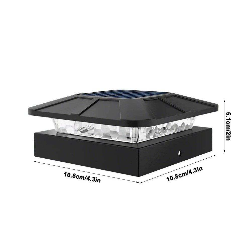Aurinkokäyttöinen LED-valo 11 x 11 x 5,1 cm Ulkovalaisin pylvääseen 3 valotilaa 2 kirkkaustasoa IP65 vedenkestävä 3,7V 0,5W