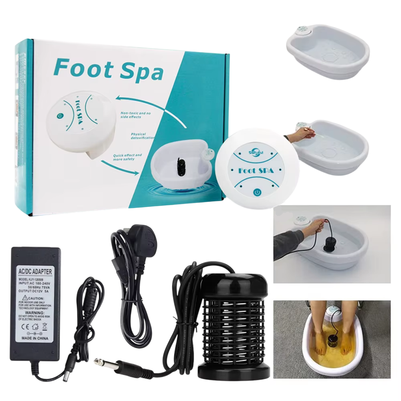 Naudi syvää detoxikointia ja jalkojen rentoutumista suoraan kotisi mukavuudesta tämän modernin iontovannekylpykoneen avulla. Hellävaraisen sähkövirran avulla vesikylvyssä tapahtuu ioniprosessin aktivointi, joka auttaa poistamaan myrkkyjä kehosta jalkapohjien kautta. Tämä menetelmä on suosittu sen luonnollisuuden, helppokäyttöisyyden ja välittömän keveyden ja palautumisen tunteen vuoksi. Laite on kompakti, helposti kuljetettava ja verkkosovittimen ansiosta sopii päivittäiseen käyttöön.
