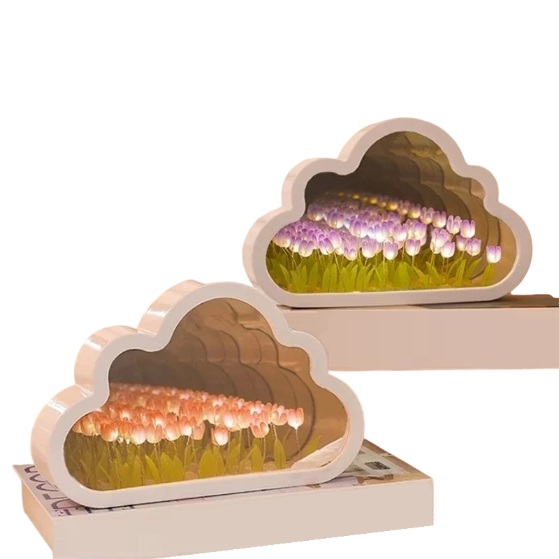 DIY tulppaanivalo pilvessä 22 x 13,5 x 5 cm Yö LED-valaistus peiliefektillä Luova koriste omaan kokoamiseen