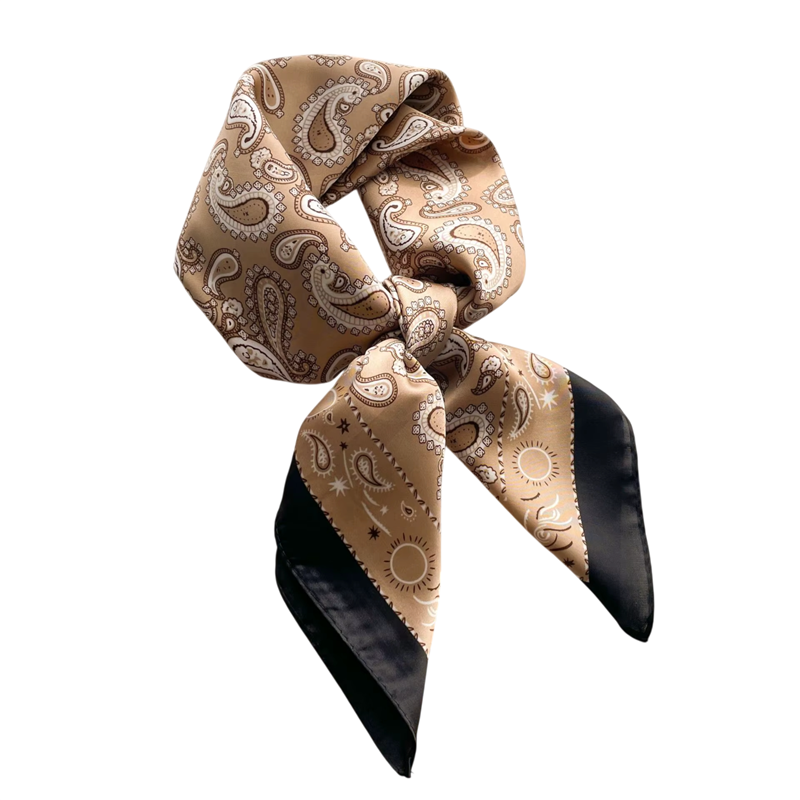 Ylellinen neliönmuotoinen huivi hienosta silkistä paisley-kuviolla on kevyt, tyylikäs ja ihanteellinen muotilisäke kaulalle ja päälle. Täydellinen kuvaus