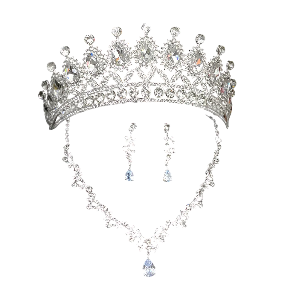 Koruja on valmistettu kestävästä metallimateriaalista, ja ne on koristeltu hienoilla kivillä, jotka heijastavat valoa ja varmistavat häikäisevän ulkonäön. Luksusellinen muotoilu, tarkka viimeistely ja elegantti tyyli tekevät tästä setistä täydellisen lisäyksen erilaisiin mekkoihin. Tiara tuo kuninkaallista viehätystä, kaulaketju korostaa dekoltee ja korvakorut kauniisti täydentävät kokonaisilmeen. Monipuolisuutensa ansiosta tämä setti sopii paitsi häihin, myös juhliin tai merkittäviin sosiaalisiin tapahtumiin.