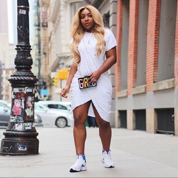 Naisten mekko, jossa lyhyet hihat.