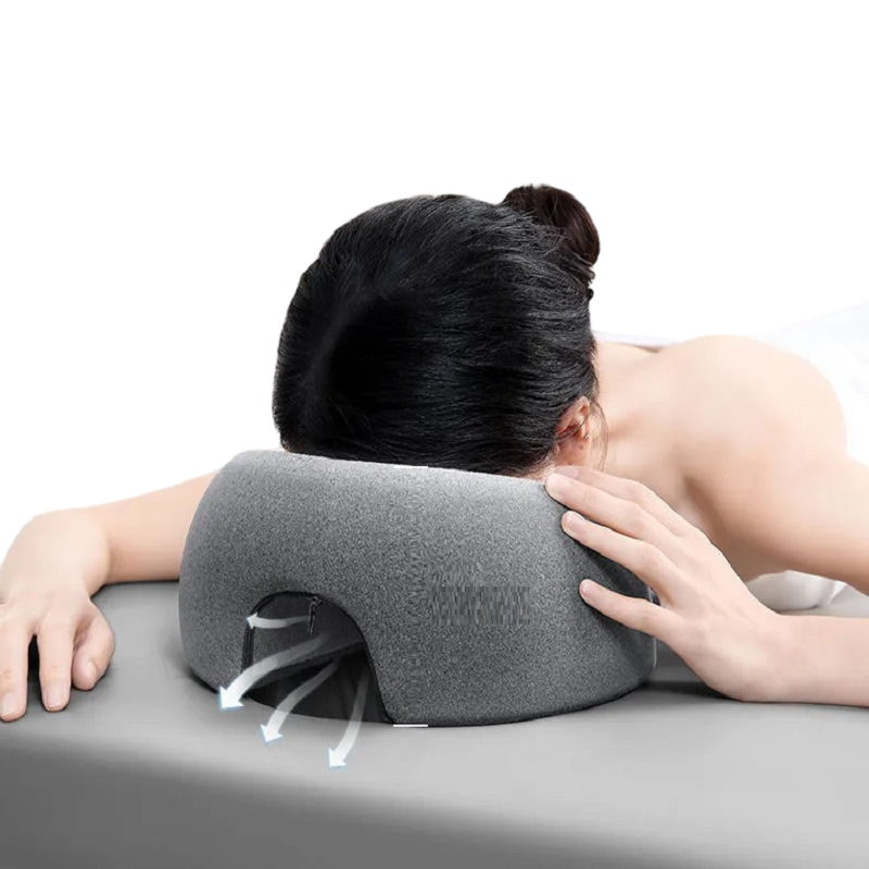Nauti maksimaalisesta mukavuudesta hieronnan aikana ergonomisen hierontatyynyn avulla, joka on suunniteltu tukemaan päätä ja kasvoja asianmukaisesti . Muistivaahdon ansiosta se mukautuu täydellisesti kasvojen muotoon ja auttaa vähentämään painetta ja jännitystä hieronnan aikana. Hengittävä materiaali varmistaa optimaalisen ilmankierron , mikä edistää miellyttävää tunnetta myös pitkäaikaisessa käytössä. Tyyny sopii sekä ammattimaisiin hierontahoitoloihin että kotikäyttöön. 14 × 10 cm:n aukko mahdollistaa kasvojen mukavan asennon ja edistää asianmukaista hengitystä.
