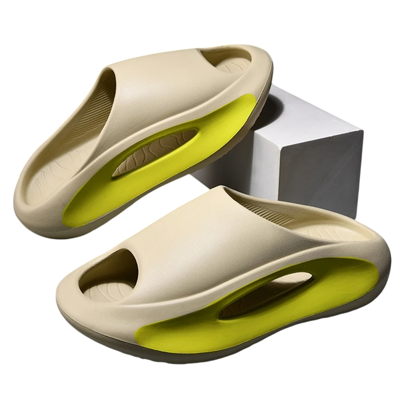 Nämä modernit tohvelit eivät ainoastaan näytä ainutlaatuisilta, vaan ne ovat myös poikkeuksellisen mukavia ja toimivia. Erittäin pehmeä ja paksu pohja tarjoaa ihanteellisen iskunvaimennuksen jokaisella askeleella, mikä tekee niistä ihanteelliset pitkäaikaiseen käyttöön kotona, kylpyhuoneessa tai jopa ulkona rentoutuessa. Ergonominen muoto mukautuu täydellisesti jalkaan ja auttaa lievittämään jalkojen jännitystä. Sivujen tyylikäs värielementti antaa tohveleille ainutlaatuisen futuristisen ilmeen ja tekee niistä todellisen design-kappaleen. Sivujen reiät takaavat paremman hengittävyyden ja kosteudenpoiston, mikä lisää mukavuutta jokaisella käyttökerralla.