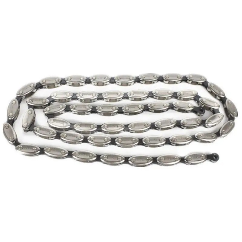 1/2" x 1/8" (12,7 mm x 3,175 mm), joka on yleinen standardi yhdennopeusjärjestelmille. Ketju on varustettu
