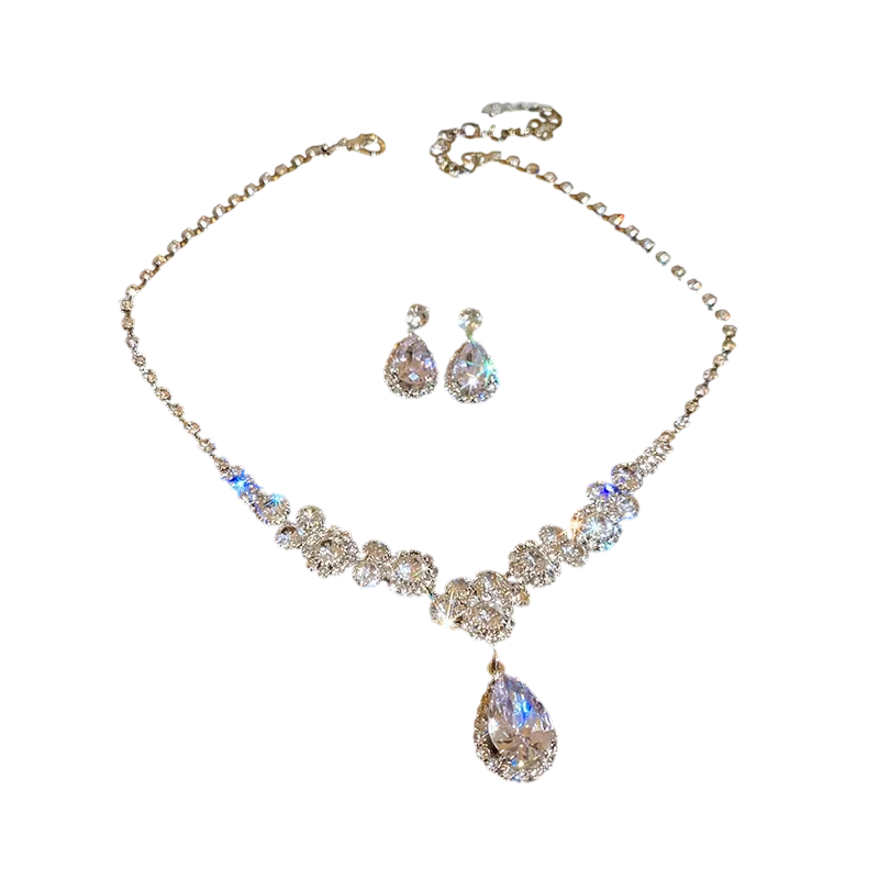 Grandioosi kaulakoru korvakoruilla Jalokivisarja Kupariseos Ylelliset kevyet hääkorut morsiamelle