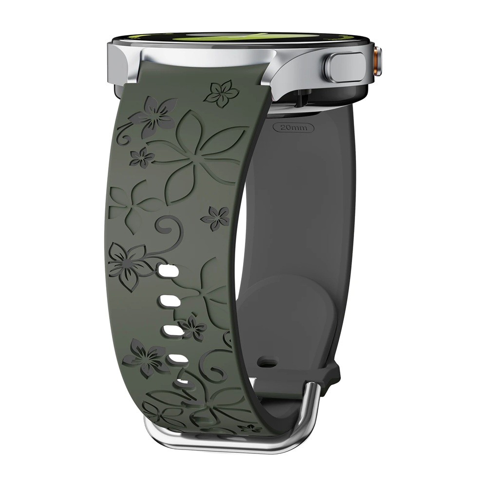 Tämä gravuroitu silikoninen ranneke on täydellinen valinta kaikille, jotka haluavat antaa Samsung Galaxy Watch 7:lle, jonka koko on 40 mm, tyylikkään ja hienosti romanttisen ilmeen. Kukka-kuvio näyttää modernilta ja tyylikkäältä, ja ranneke sopii sekä urheiluun että päivittäiseen käyttöön.