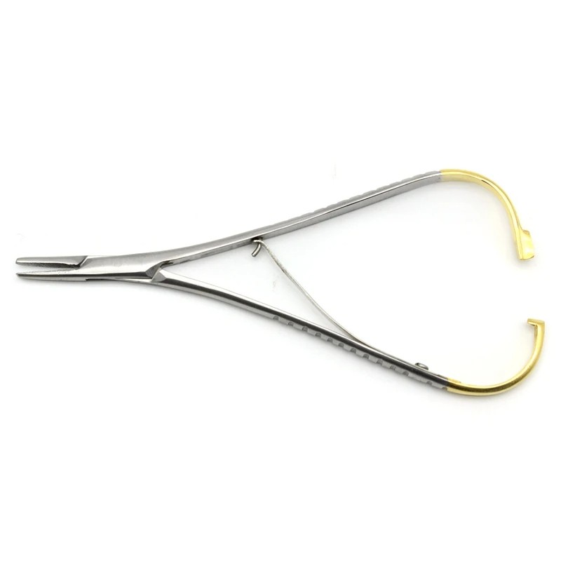 Tämä neulapihdit on välttämätön työkalu jokaiselle hammaslääkärille tai ortodontistille, joka tarvitsee luotettavaa ja kestävää välineistöä. Sen kestävä rakenne takaa vakauden työskentelyssä, kun taas ergonominen muotoilu vähentää käden väsymistä. Helpon steriloinnin ja toistuvan käytön ansiosta tämä työkalu on taloudellinen ja pitkäaikainen investointi. Se tarjoaa ammattilaismainen suorituskyky ja mukavuutta jokapäiväisessä käytössä vastaanotolla ja laboratoriossa.