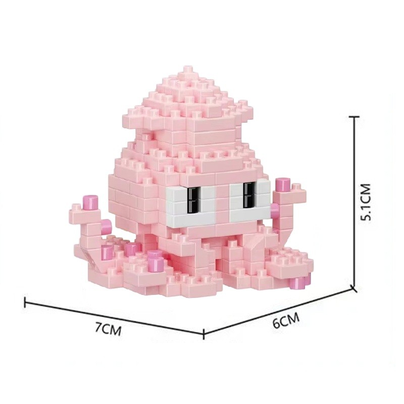 Hauska mini rakennussarja Mustekala 7 x 6 x 5,1 cm Merellinen vedenalainen maailma Osasuunnat Luova opettavainen eläinmalli Yhteensopiva pieni rakennussarja