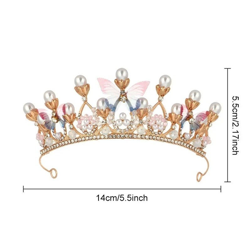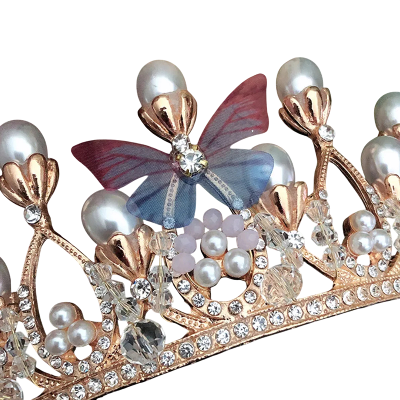 Tämä helmi hiuskruunu erottuu huolellisista yksityiskohdista ja tyylikkäästä ulkonäöstä. Käytännöllinen koko 14 x 5,5 cm takaa tasapainoisen suhteen näyttävyyden ja hillittömyyden välillä. Perhos-elementit antavat koristeelle herkkyyttä ja visuaalista keveyttä, kun taas helmet tuovat luksusvaikutelman. Yleinen muotoilu mahdollistaa helpon yhdistämisen erilaisiin vaatteisiin ja hiustyyleihin.