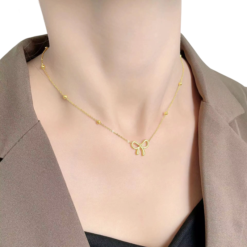 Tämä hienovarainen kaulakoru solmumuotoisella tiestä on ihanteellinen valinta naisille ja tytöille, jotka suosivat herkkiä, mutta tyylikkäitä lisäosia. Moderni muotoilu romanttisella solmuelementillä on elegantti ja ajaton, joten se sopii sekä päivittäiseen käyttöön että juhlavampiin tilaisuuksiin. Valmistettu kestävästä titanista ja ruostumattomasta teräksestä, se tarjoaa korkean lujuuden ja pitkän käyttöiän jopa säännöllisessä käytössä. Kevyt rakenne takaa mukavuuden koko päivän ajan ja lisää asusteeseen hienovaraista kiiltoa. Tämä trendikäs koru korostaa naisellisuutta ja antaa jokaiselle tyylille hienostuneen sävyn.