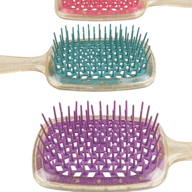 Käytännöllinen hiusharja on suunniteltu helpottamaan päivittäistä harjaamista ilman tarpeetonta nykimistä ja hiusten katkeamista. Ergonomisen muotoilun ja kevyen rakenteen ansiosta se on mukava pitää kädessä ja mahdollistaa nopean kampauksen muotoilun kotona ja matkalla. Leveät hampaat auttavat hellävaraisesti selvittämään myös paksut tai takkuiset hiukset ja minimoivat niiden vaurioitumisen. Hengittävä rakenne tukee samalla ilman virtausta, jota arvostat hiustenkuivaamisen tai nopean muotoilun aikana.