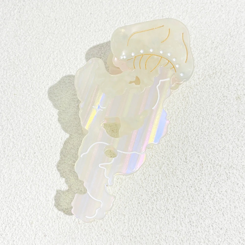 Tämä kahden meduusan kuvioinen hiusklipsi on ihanteellinen valinta niille, jotka etsivät jotain muuta kuin perinteistä yksinkertaista mallia. Se mahdollistaa hiusten nopean muokkauksen ja lisää samalla kampaukseen huomattavan muotoiluelementin. Jos haluat täydentää päivittäistä tyyliäsi epätavallisella yksityiskohdalla, tämä malli on mielenkiintoinen lisä hiuslisävarusteiden kokoelmaasi.