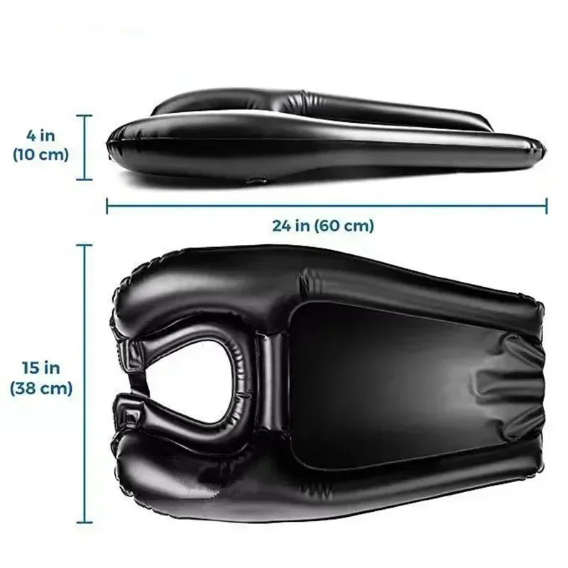 Ilmapuhallettava kannettava hiusten pesuallas 60×38×10cm taitettava PVC amme raskaana oleville naisille, vanhuksille ja potilaille, nopea puhallus ja tyhjennys