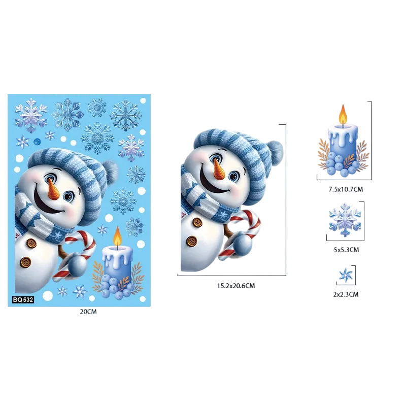 Joulustickerit ikkunaan 20 x 30 cm Siniset tarrat jouluteemalla Lumiukot Lasikoristeet Uudelleen käytettävät ikkunakoristeet