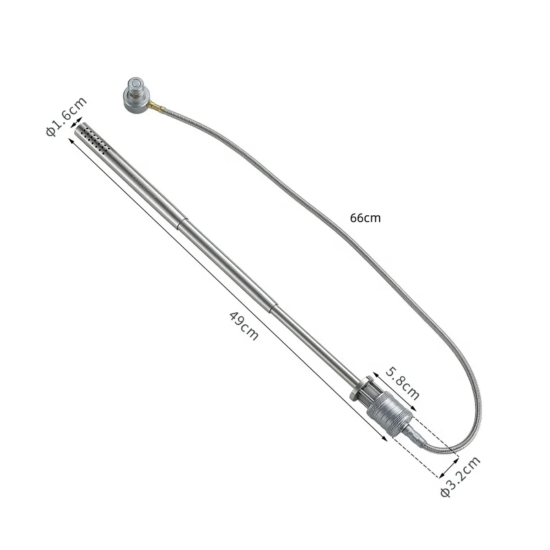 Kaasuhohtopistooli 66 cm letkulla ja säädettävällä putkella Hiiliteräksinen ruostumaton teräs Käsikäynnistys Grillaus Juottaminen Lämmitys