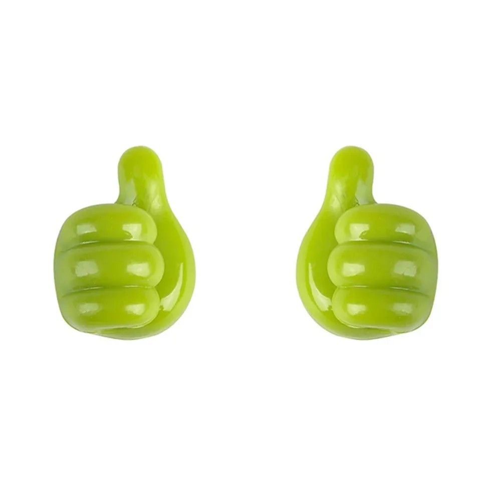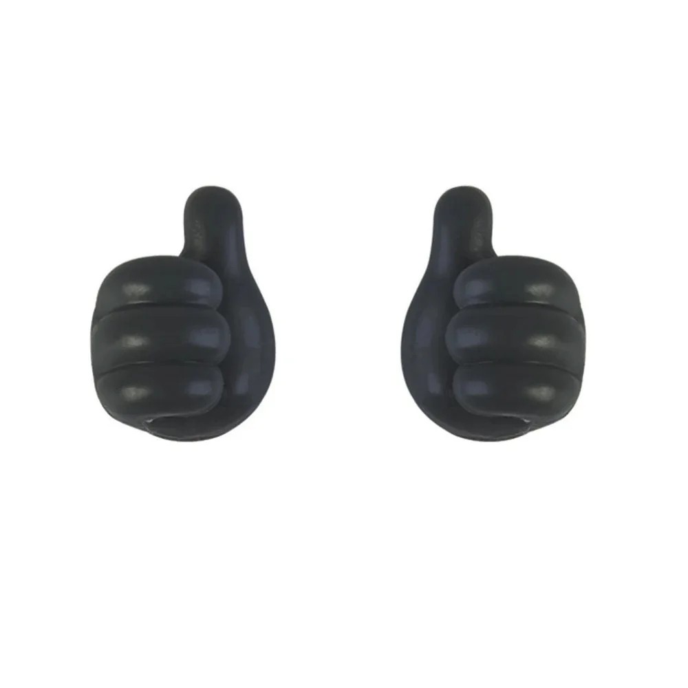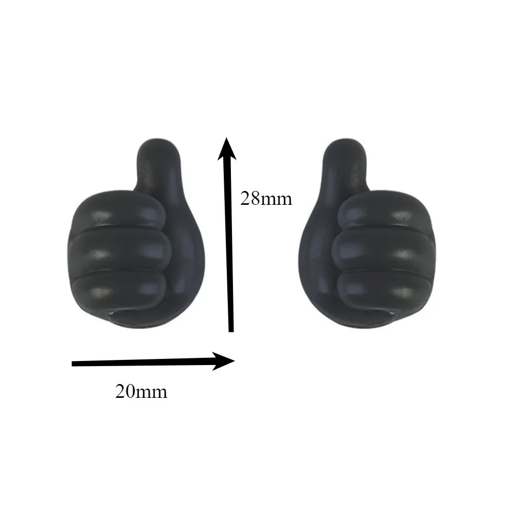 Kahden itseliimautuvan kaapelipidikkeen sarja silmälaseille ja pienille esineille autoon ja kotiin käden muotoisena, jossa on peukku ylös kumista