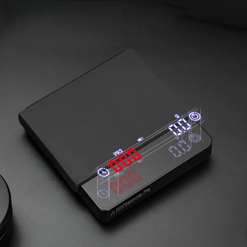 Kahvakeittiön vaaka 0,1 g – 2 kg 800 mAh Ladattava litiumakku 10 h Kompakti digitaalinen vaaka ajastimella PR1 PR2 PR3 tilat