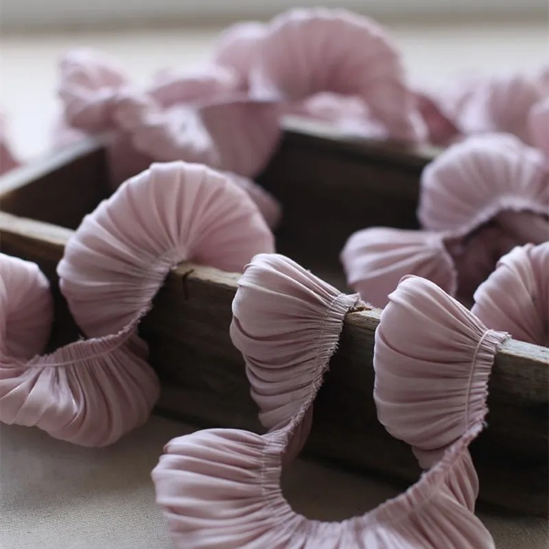 Kaksikerroksinen laskostettu röyhelönauha on koristeellinen tekstiililisävaruste, joka sopii ompeluun, vaatteiden koristeluun ja erilaisiin luoviin projekteihin. Kaksikerroksisen rakenteen ansiosta se luo voimakkaan koristeellisen efektin, joka voi korostaa vaatteiden, lisävarusteiden tai kodin koristeiden ulkonäköä. Laskostettu röyhelö antaa nauhalle volyymiä ja hienon tekstiilidetailin.