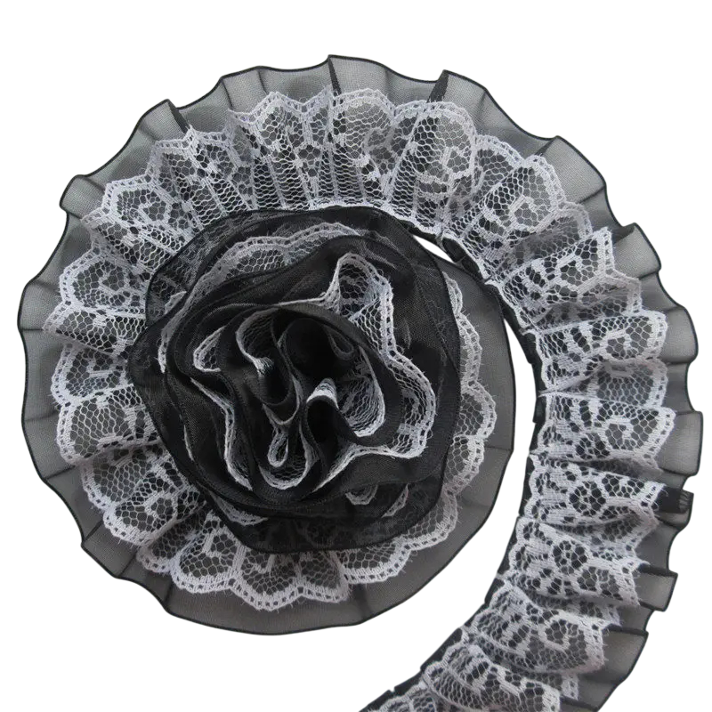 Tätä tekstiililisäystä voidaan käyttää laajassa valikoimassa projekteja – vaatteiden koristelusta sisustuskoristeiden valmistamiseen. Jos etsit tyylikästä pitsiä, joka antaa tuotteillesi elegantin ilmeen, tämä kaksikerroksinen nauha on täydellinen valinta.